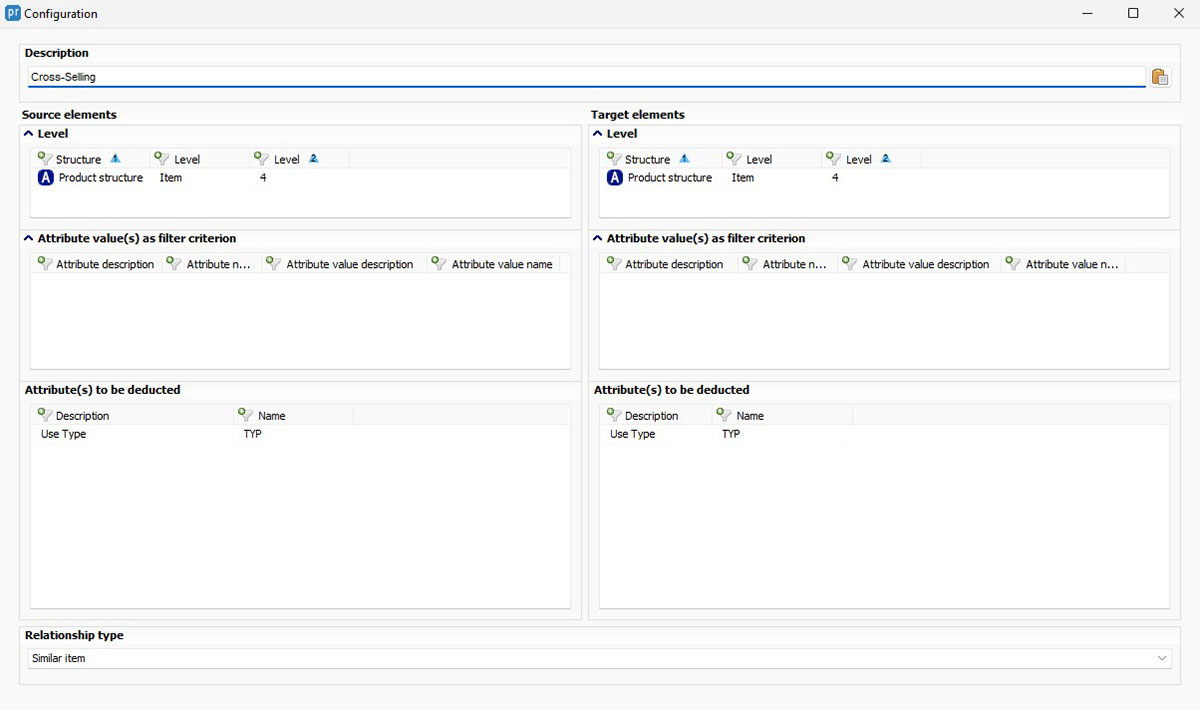Automatic referencing automatically creates references based on predefined attributes (e.g. color, length or price). These are only created if the predefined conditions are met for both the source and target elements.